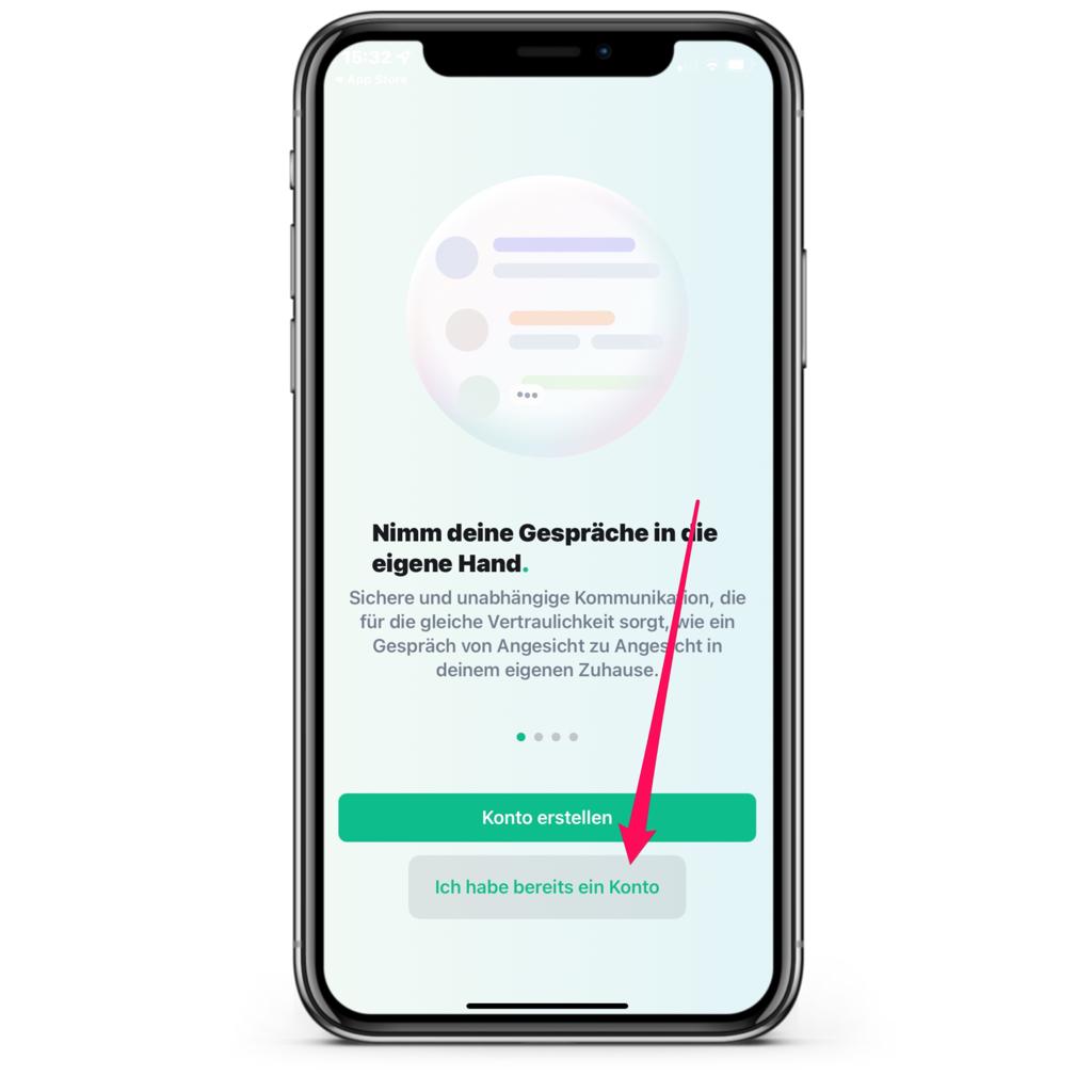 Öffne die App und klicke auf "Ich habe bereits ein Konto".