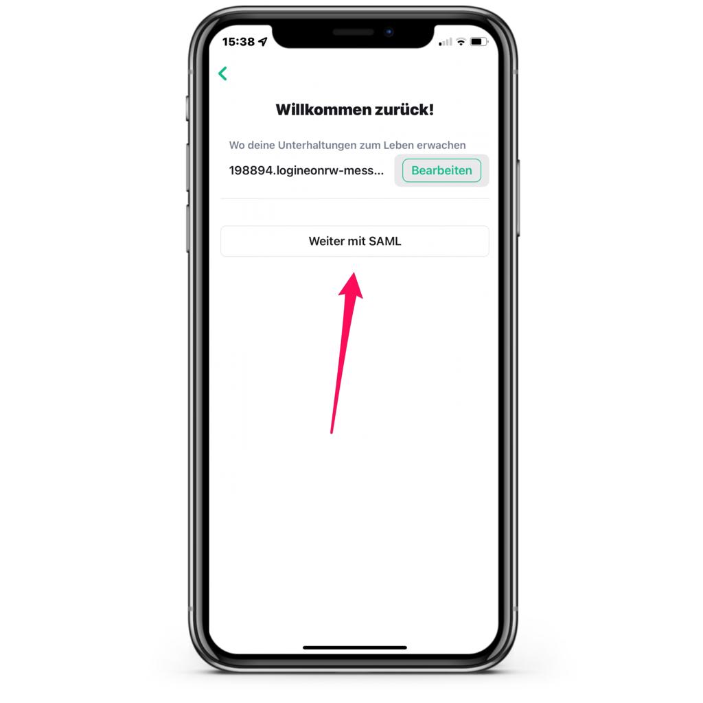 Wähle im nächsten Schritt (je nach Betriebssystem) auf ANMELDEN, MIT SAML WEITERMACHEN oder MIT SAML ANMELDEN.